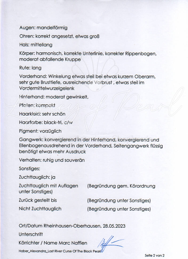 | 18.08.2024 | CACIB Ludwigshafen | Jessica Feldhoff | Offene | SG2 |